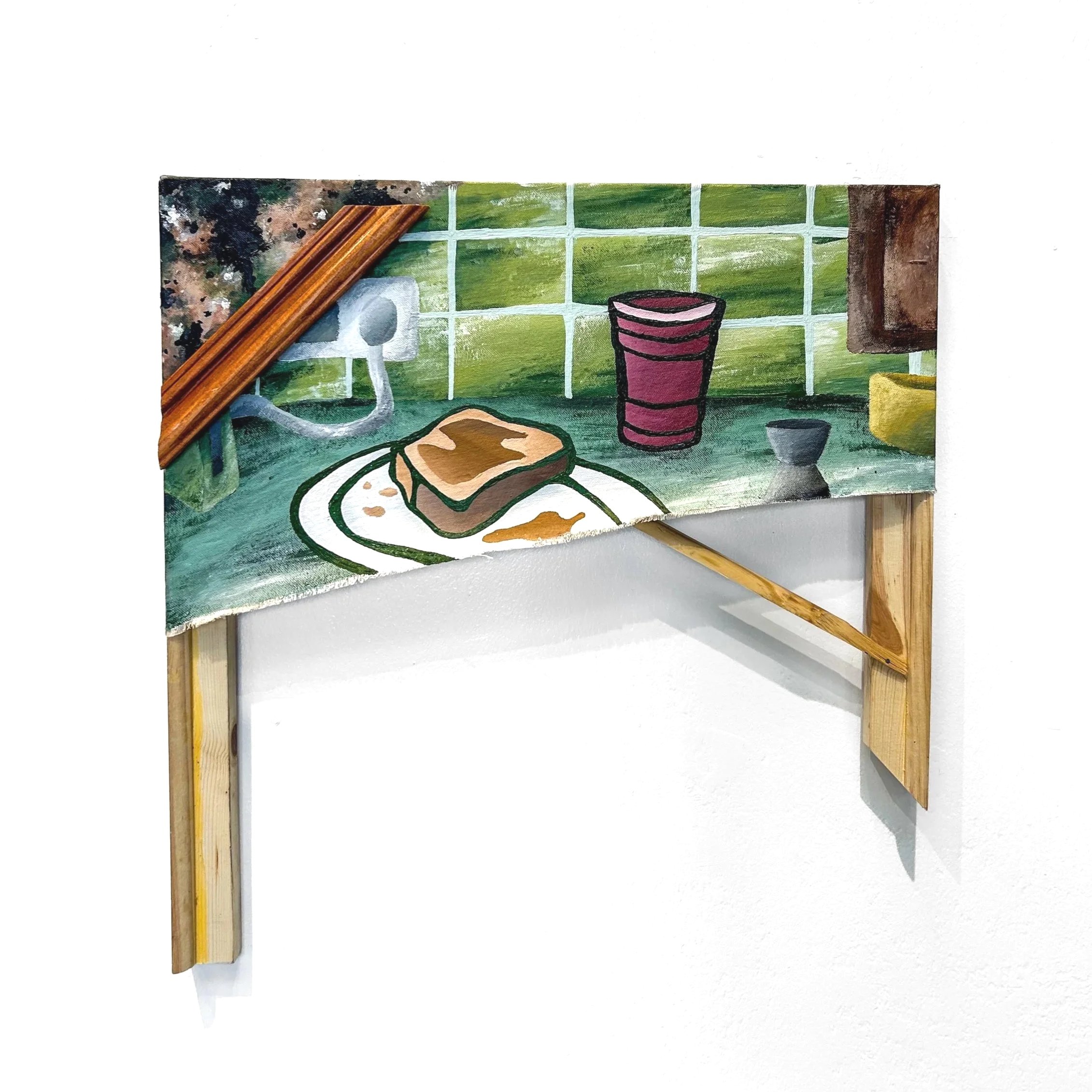 A series of deconstructed, fragmented canvas stretchers dismantled to mirror the fractured nature of memory and trauma. Through constructing and reworking complex canvas forms, Wienandt engages with art therapy practices and psychological research to better understand her own experiences with CPTSD while illuminating the broader realities of living with severe trauma.