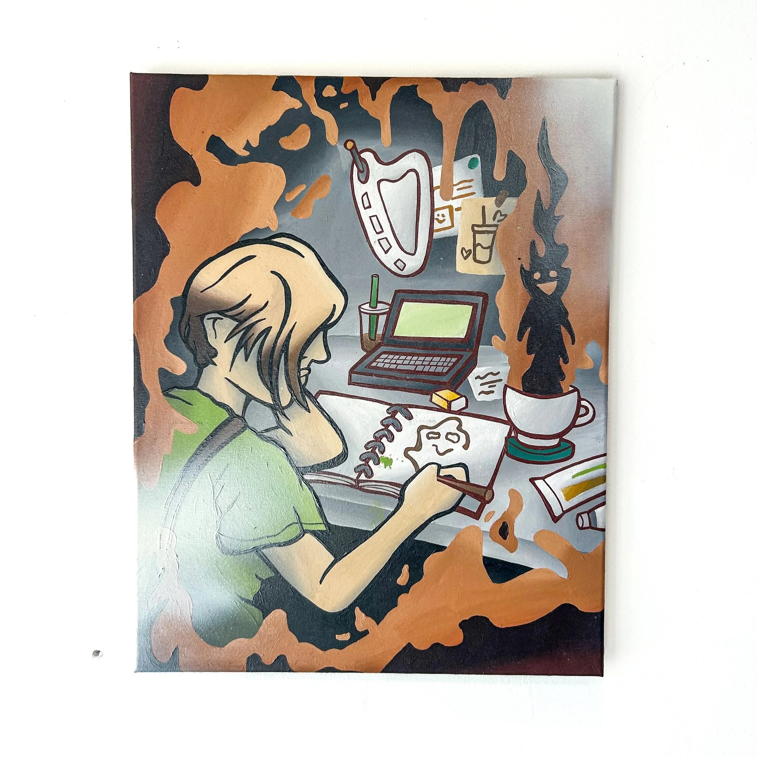Highlighting the often unspoken aspects of mental health, Wienandt delves into issues that remain largely concealed—such as the high cost of medication, burnout, and dissociation. Using the visual metaphor of “white-out,” or the act of erasure, she layers white paint across each piece to symbolize society’s tendency to obscure or overwrite pivotal conversations surrounding mental health.
