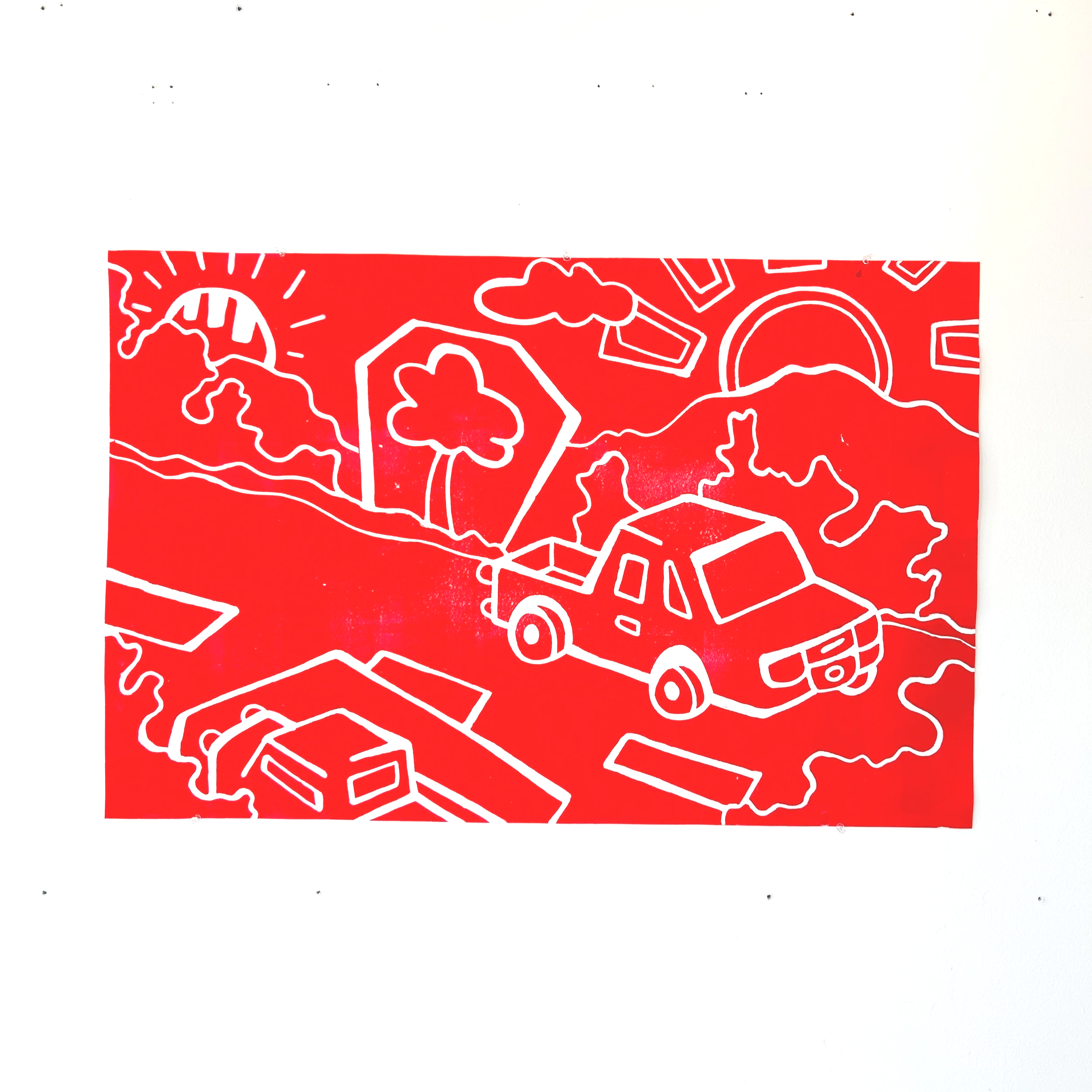 Drive-By, October 2025, mixed media, 36” x 24”